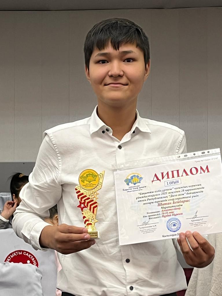 Мектеп-лицейіміздің 10 сынып оқушысы Шатан Бейбарыс «Бақытты елдің ұрпағы» қоғамдық қорының ұйымдастыруымен 2021 жылдың 28 қарашасында өткен Республикалық «Дала сазы» байқауында жоғары дәрежеде өнер көрсетіп, жүлделі І орын иеленді.