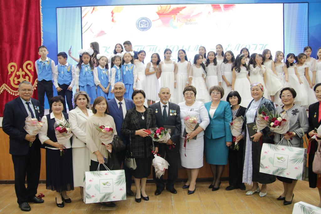Ардагер ұстаздарға мектеп ұландары мерекелік жыр шумақтарын арнап, жас әншілеріміз ән-шашуларын шашты.