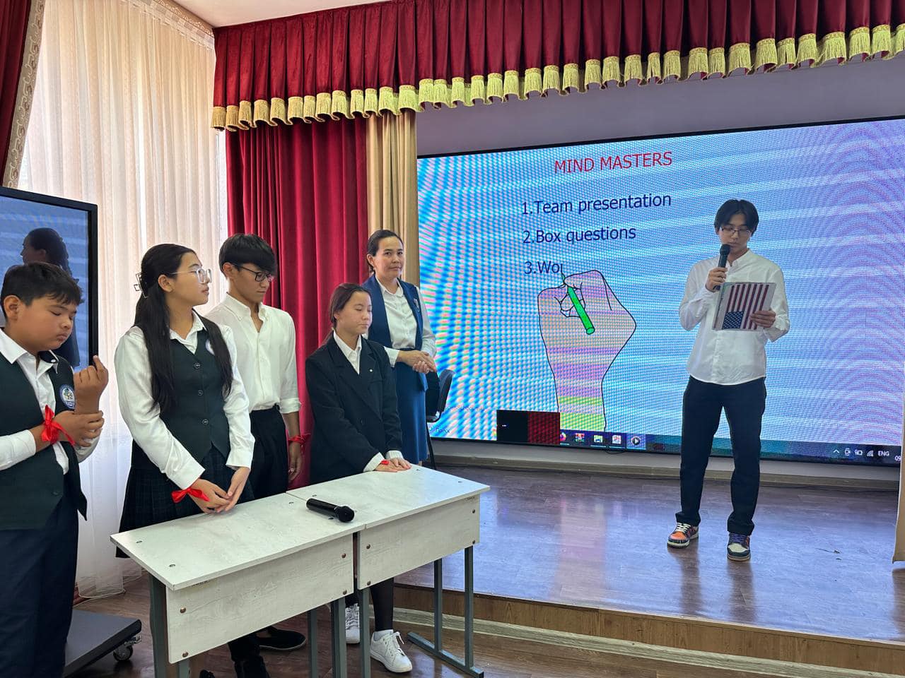 Мектеп-лицейімізде "Learning English with artificial intelligence" атты Ағылшын тілі апталығы аясында 9 сыныптар арасында “Mind Masters” тақырыбында миға шабуыл сайысы ұйымдастырылды.
