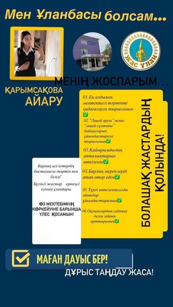 Мектеп-лицейіміздің болашағын айқындайтын маңызды оқиға - мектеп ұланбасшысын сайлау өткізілетінін жариялаймыз!