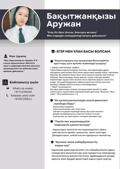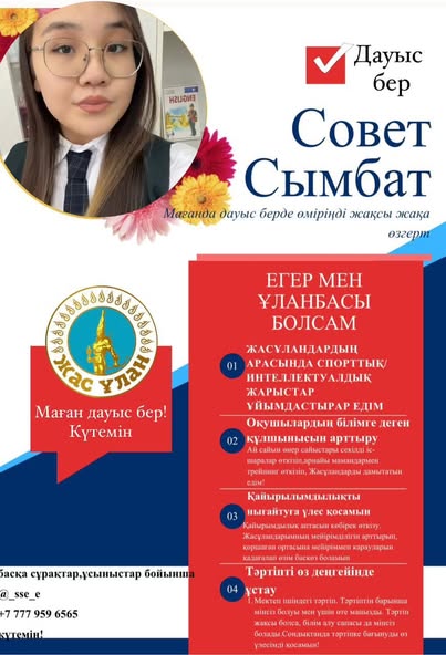 Құрметті оқушылар! Сіздерді белсенді қатысуға шақырамыз! Сайлау нәтижесі баршамыз үшін өте маңызды! Ең лайықты үміткерге дауыс берейік!