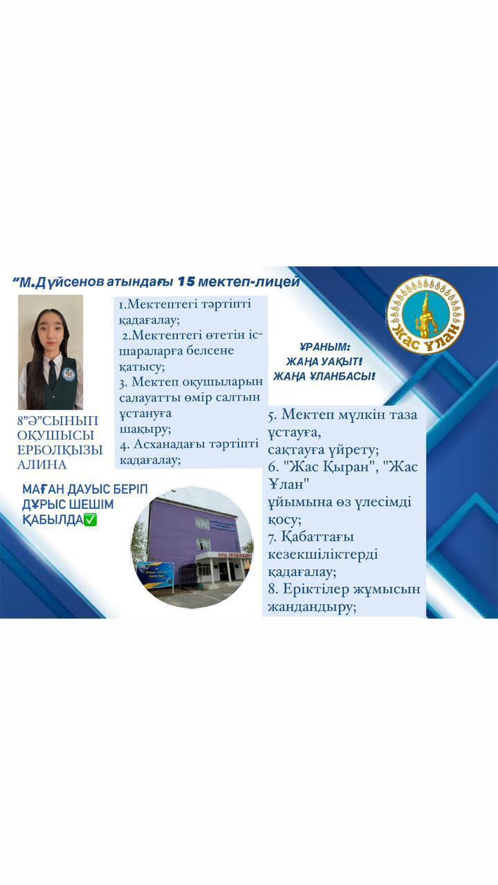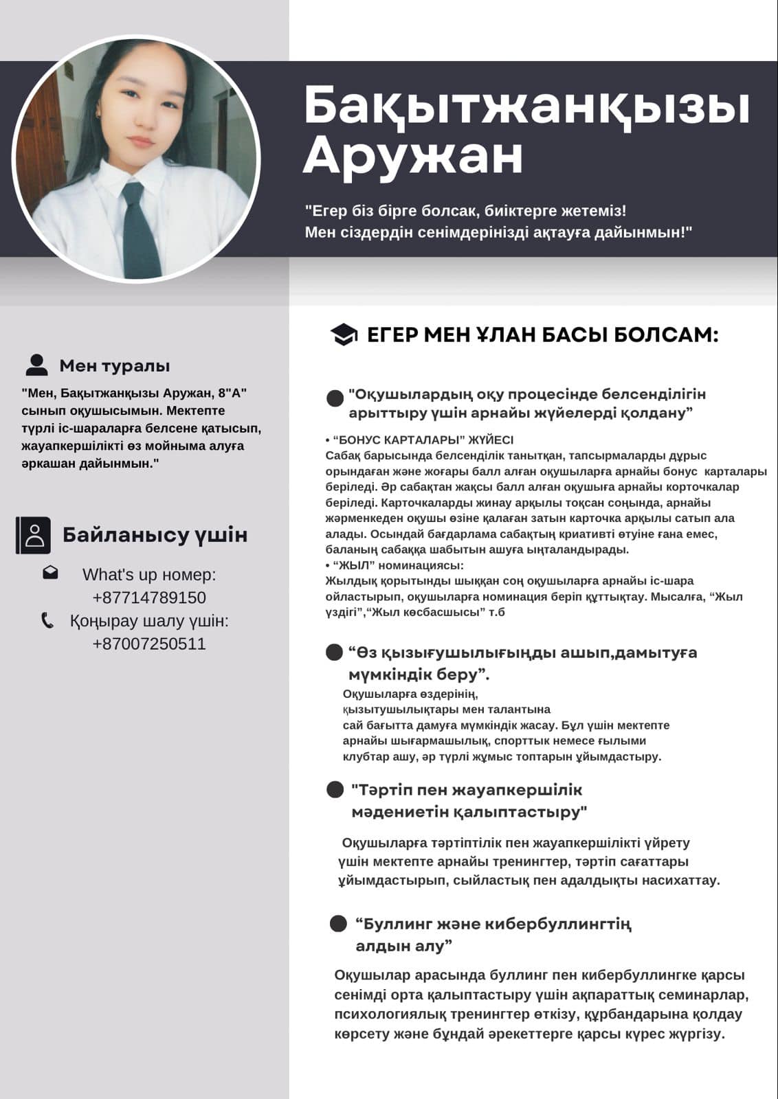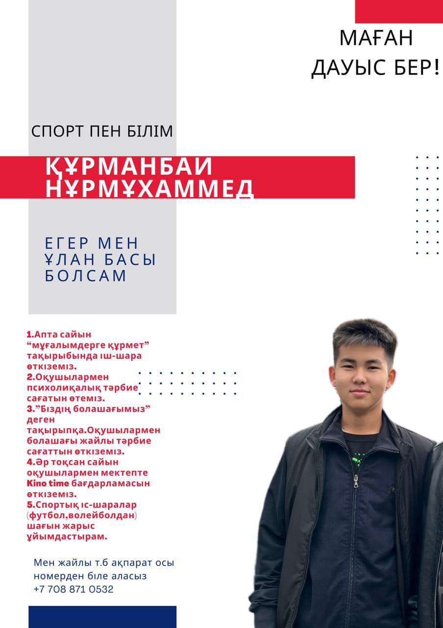 Мектеп-лицейіміздің болашағын айқындайтын маңызды оқиға – мектеп ұланбасшысын сайлау өткізілетінін жариялаймыз!