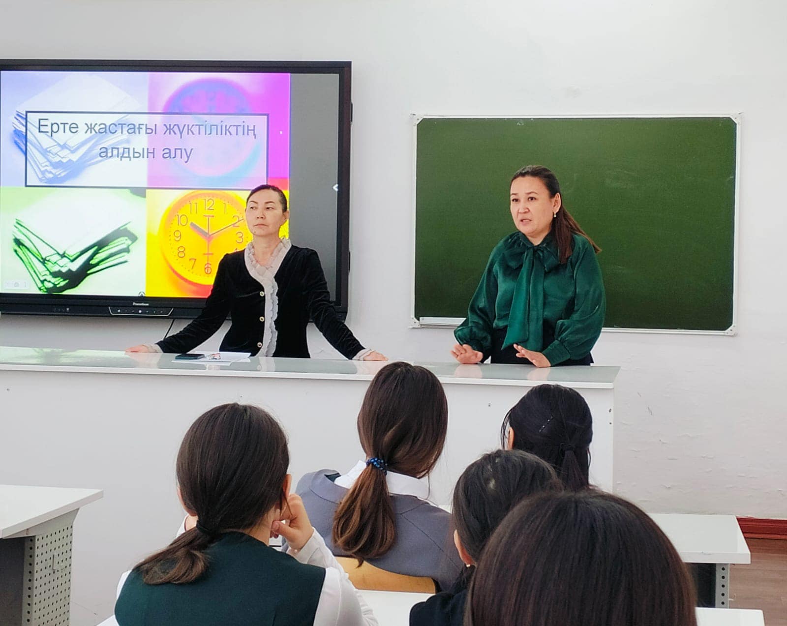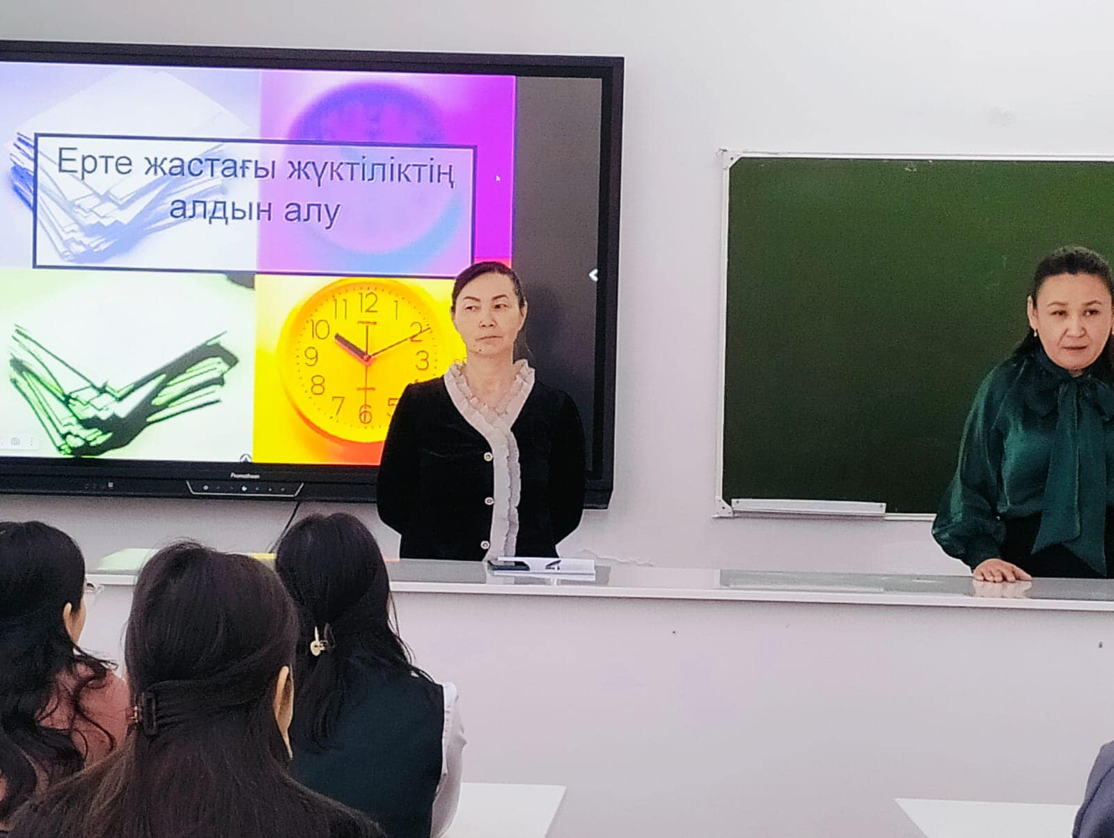 8 - 9 - сынып қыз балаларына жыныстық жетілу және ерте жүктіліктің қауіптілігі мен алдын алу шаралары жөнінде түсіндірме жұмыстары жүргізілді. Жасөспірім қыз бала психологиясы мен физиологиясына кері әсері мен тигізетін залалы жайында айтып ескертті. Оның себептеріне тоқтала отырып, сақтану жолдарына кеңестер ұсынылды.